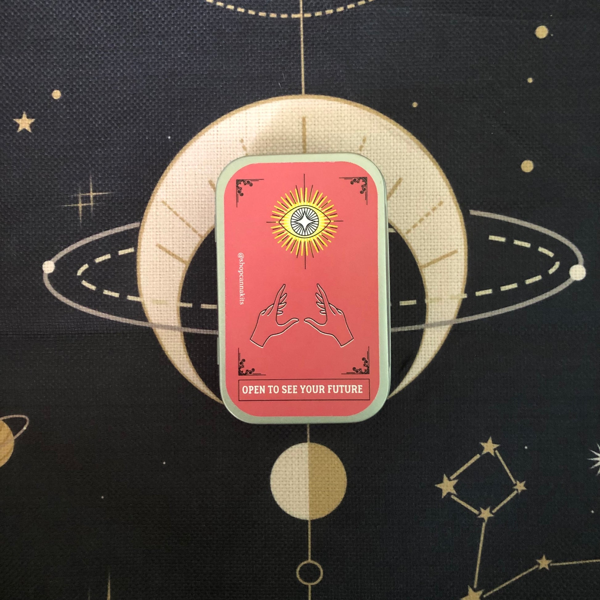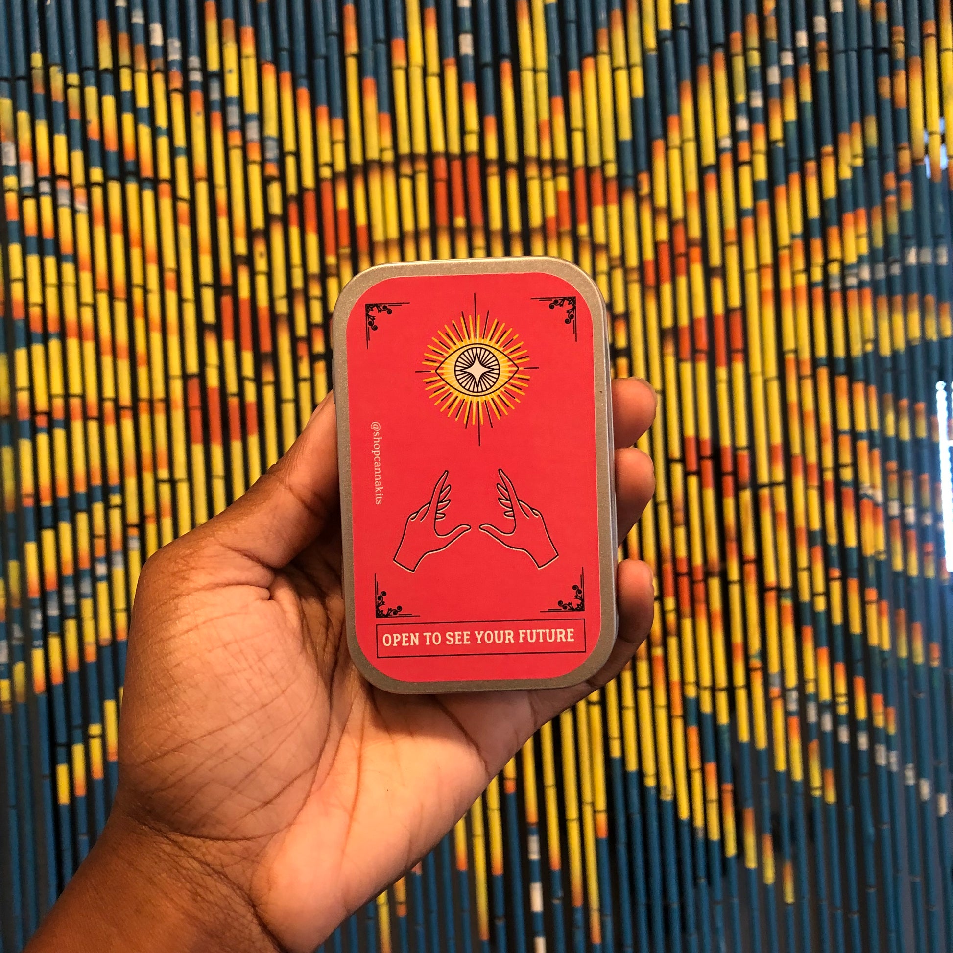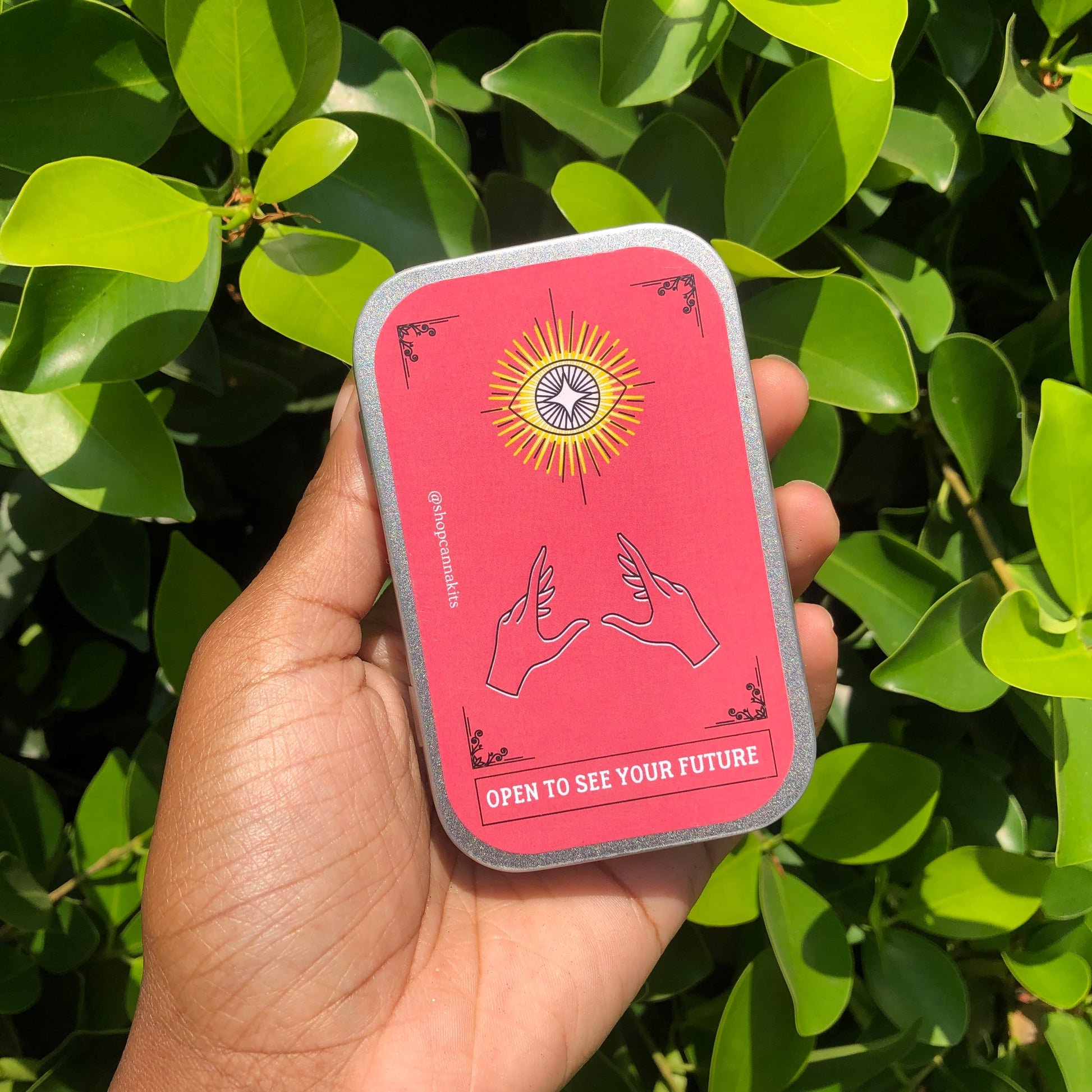 The tins size is 95 x 62 x 20 mm/ 3.75 x 2.45 x 0.8 inches (L x W x H); Thickness is 0.23 mm. So small it can fit in your pocket or the palm of your hand.